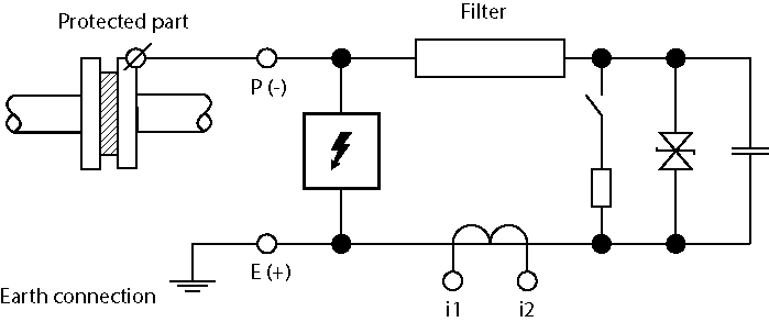 - Der SPD-Teil schützt das kathodische Schutzsystem gegen direkte oder indirekte Blitzeinschläge bis zu 100 kA (atmosphärischer Impuls 10/350 μs).