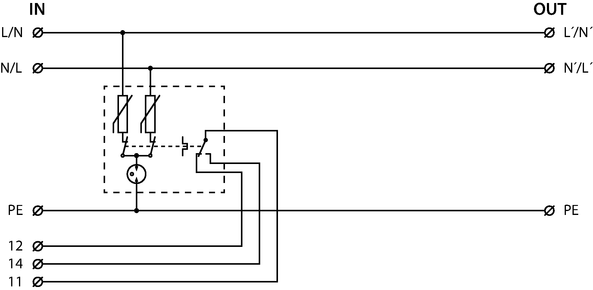 | Nennableitstoßstrom (8/20 µs) L+N-PE | In | 5,00 kA |