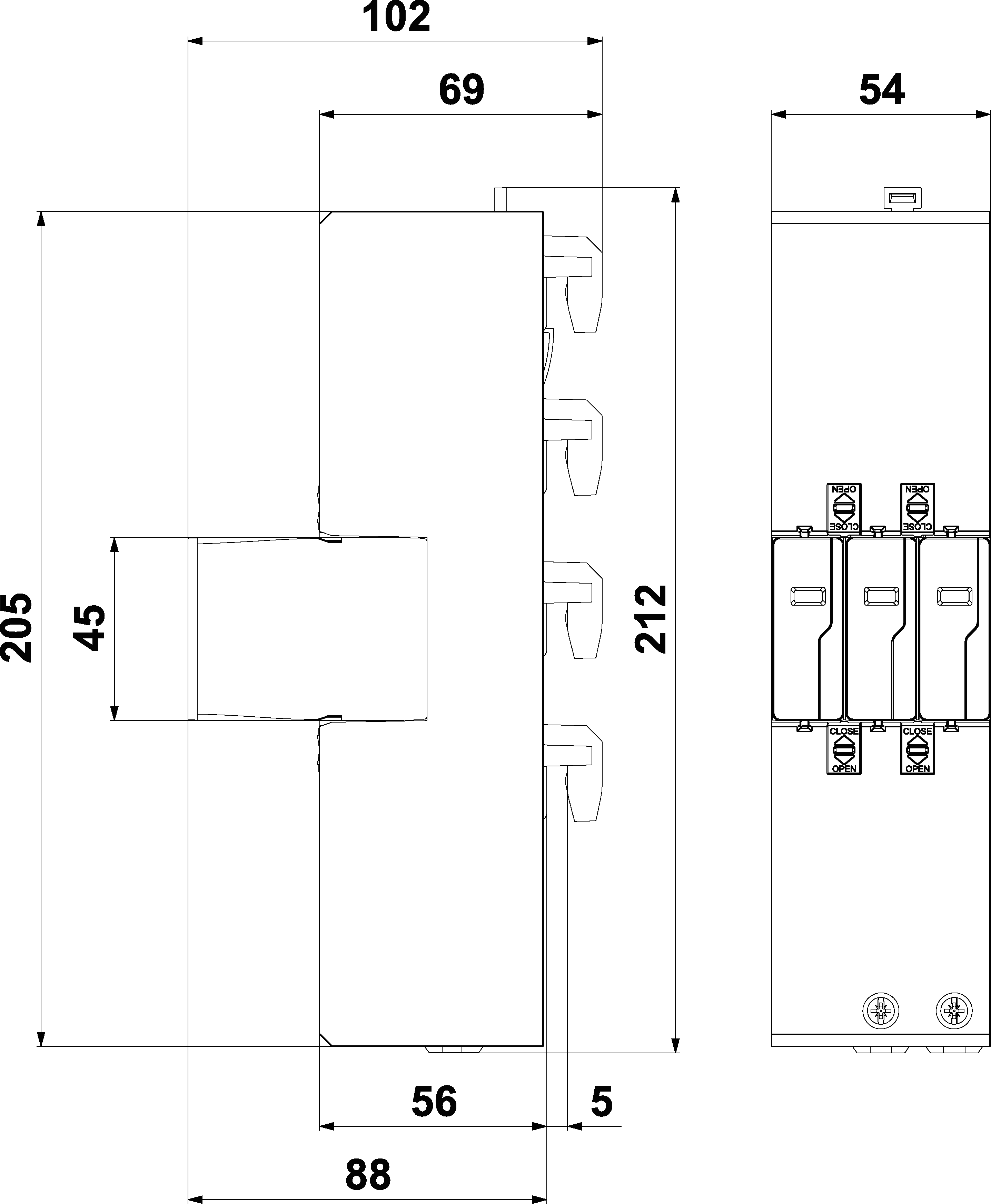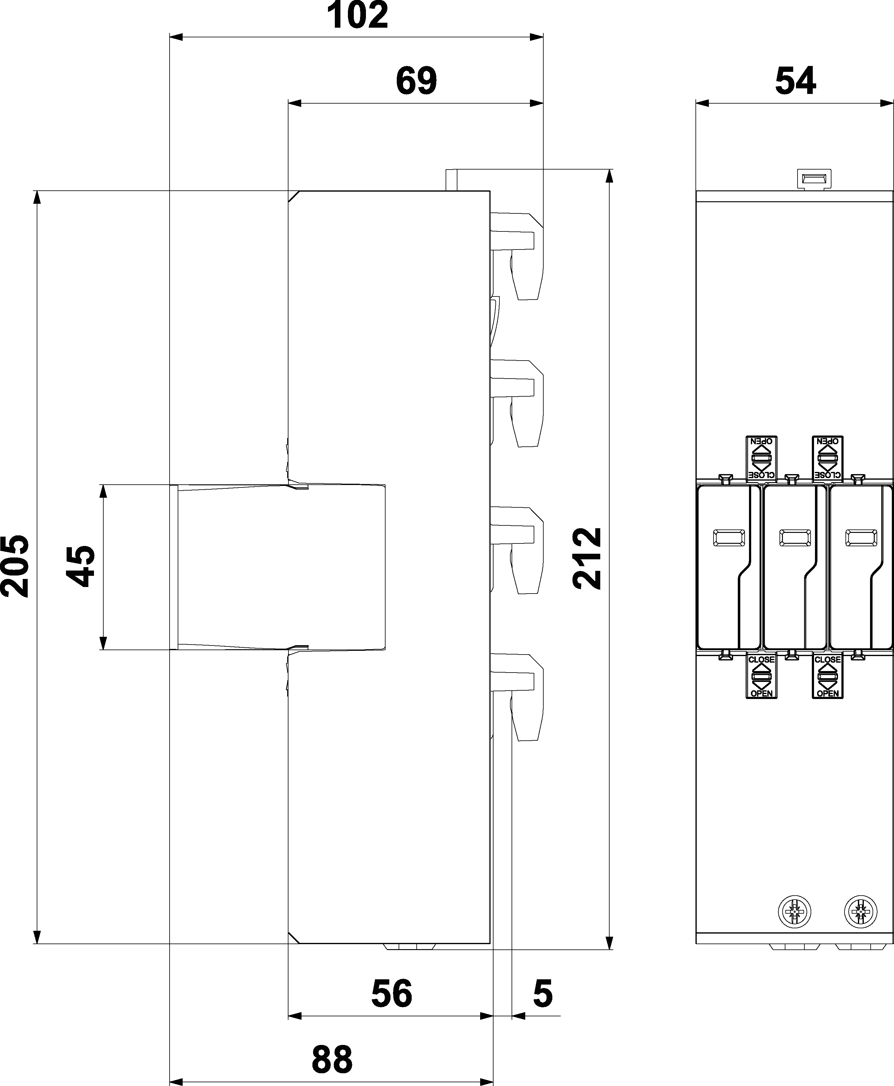 Bestellnummer: A06621Austauschbares Modul, optische Fehleranzeige, Blockierungsmöglichkeit des Moduls, für Sammelschienen 40 mm