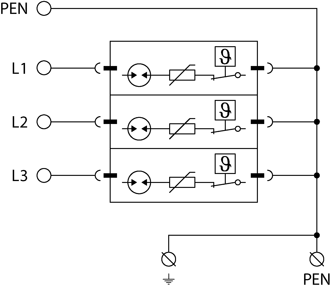 - Installation in NS Verteilungen an der Schnittstelle der Zonen LPZ 0–LPZ 1, insbesondere in Hauptschaltanlagen vor Messanlagen