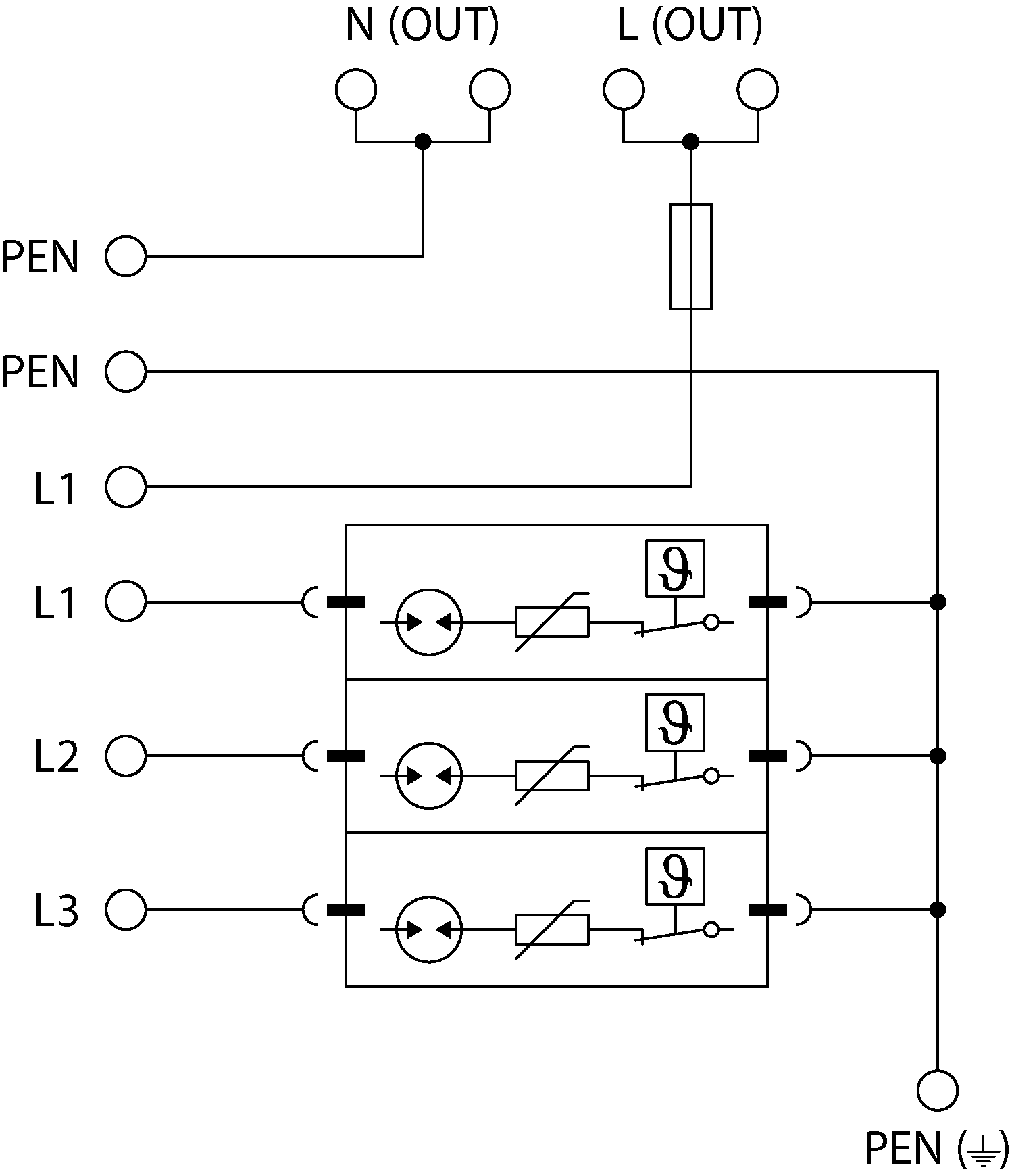 - Installation in NS Verteilungen an der Schnittstelle der Zonen LPZ 0–LPZ 1, insbesondere in Hauptschaltanlagen vor Messanlagen