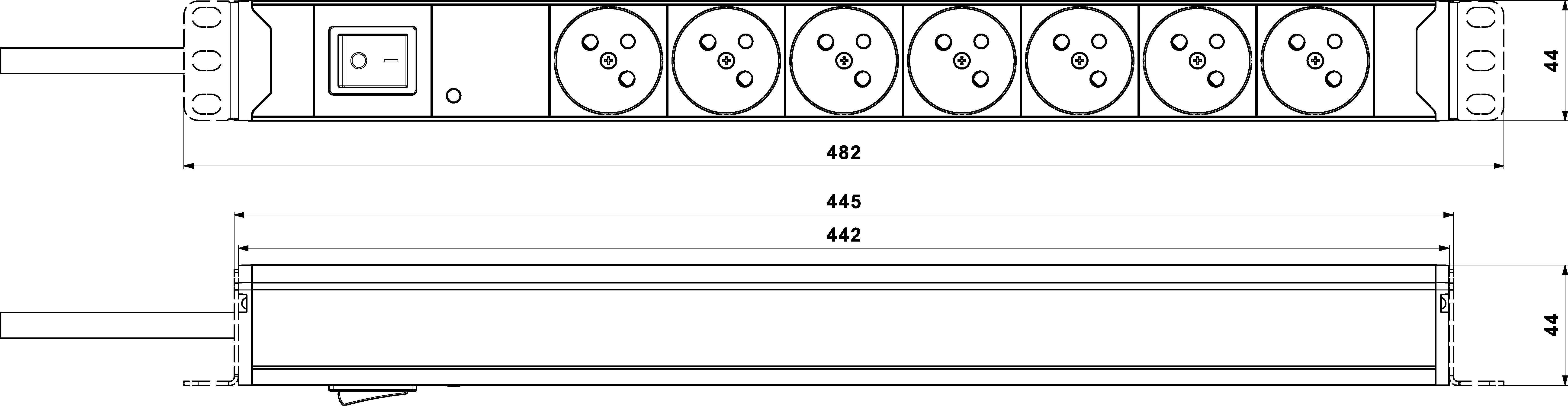 - Einbauhöhe 1U, 3-m-Stromanschlusskabel, CEE 7/7 Steckertyp