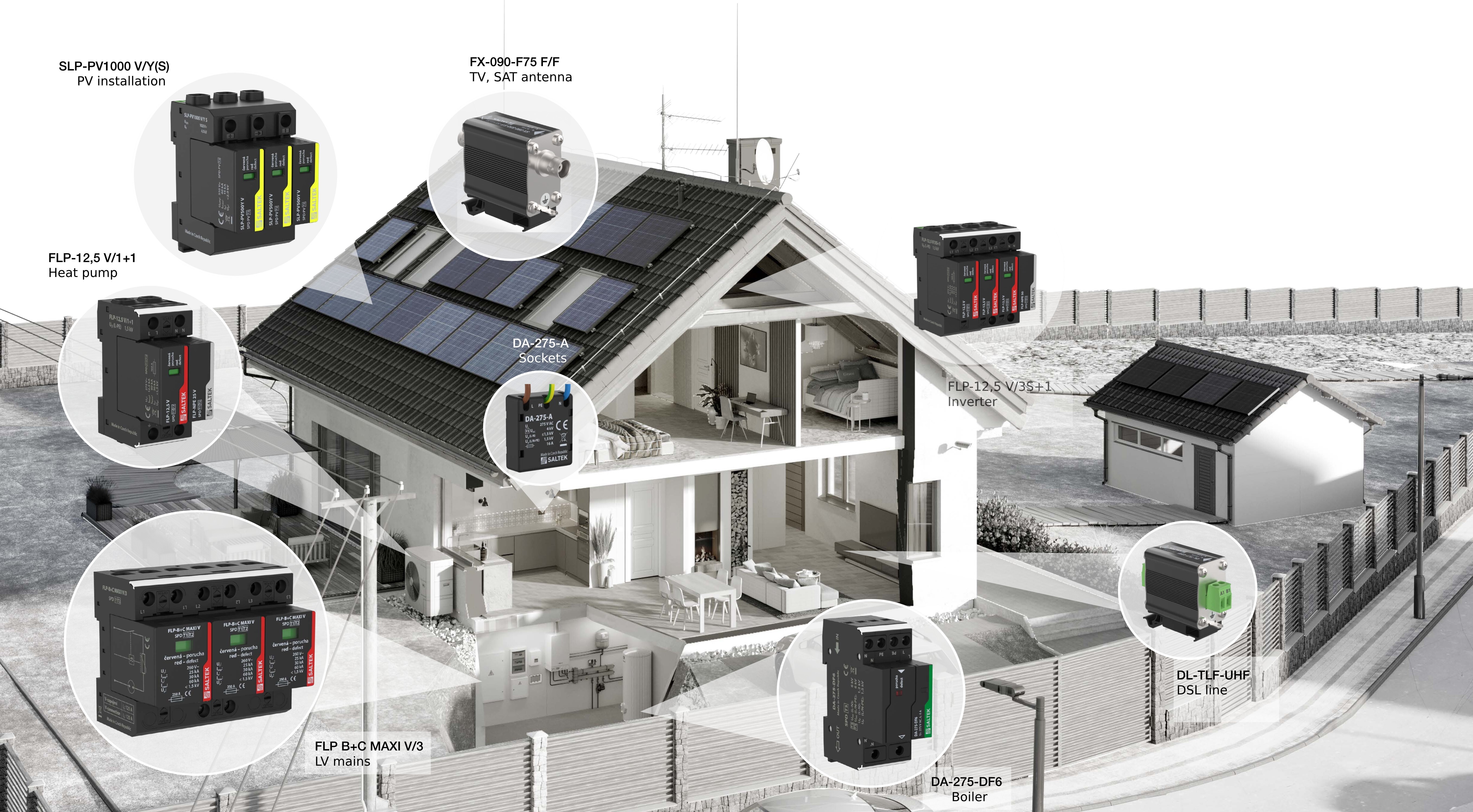 It may seem that the acquisition of your own small power plant is easy, most companies will manufacture and calculate everything on a turnkey basis. But nothing is as simple as it seems at first glance. The price of even a small PV power plant can run into tens or hundreds of thousands of crowns, so everyone wants to avoid the possible risk of destruction or damage. Photovoltaic power plants (or PVE) are built in exposed places - on large areas, on roofs and wherever there is an open area, so that exposure to sunlight is as long as possible. That's the trick, after all. However, this also carries risk. Already in childhood, we all learnt that hiding under a solitary tree in a meadow during storms is not a clever idea. Therefore, it is reasonable to protect photovoltaics. So, how to invest smartly in panels and technology and not lose the entire investment with a single stroke of lightning? The solution offers surge protection from SALTEK, which offers a wide range of products to protect the entire project.