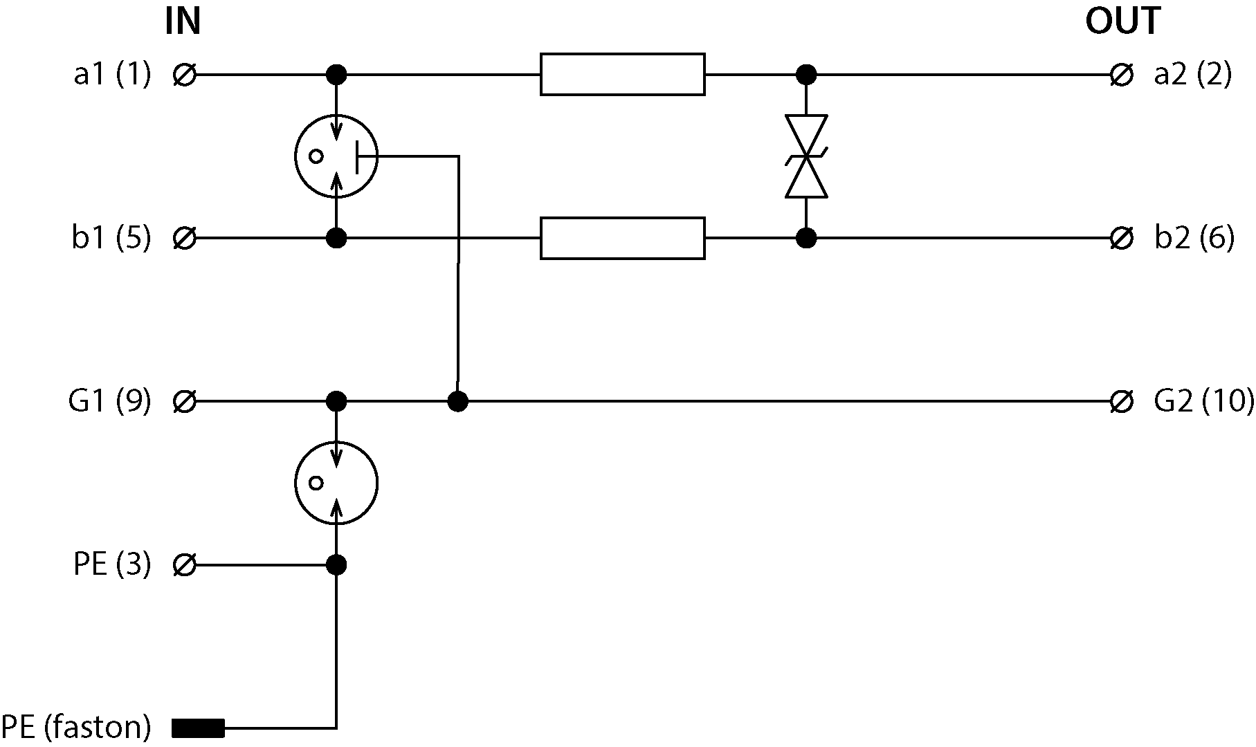 - proti podélnému přepětí (linka -ochranná zem) hrubá ochrana a proti příčnému přepětí (žíla – žíla) hrubá i jemná přepěťová ochrana a (žíla – GND) hrubá ochrana