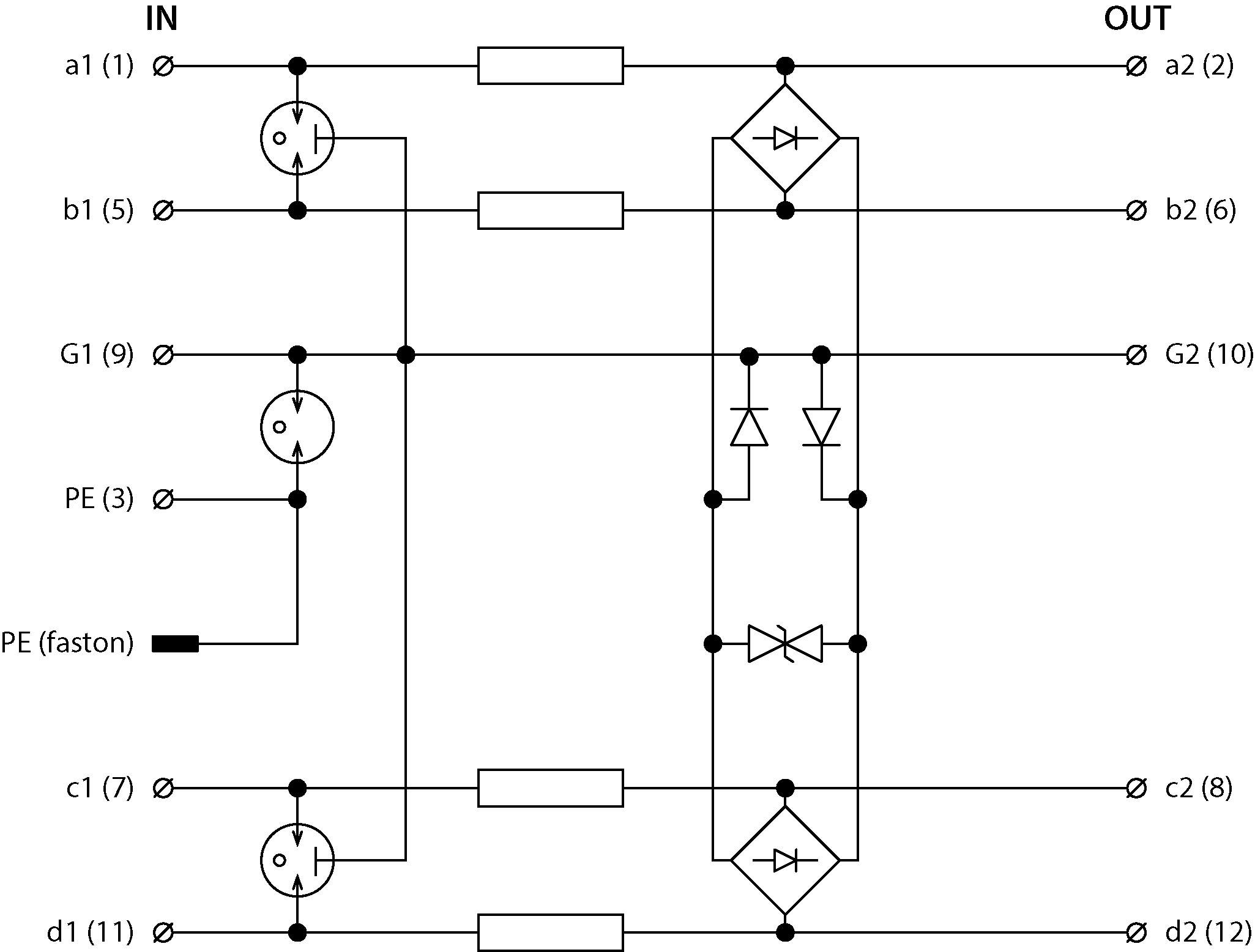 • proti podélnému přepětí (žíla–ochranná zem) a proti příčnému přepětí (žíla – žíla) hrubá i jemná přepěťová ochrana