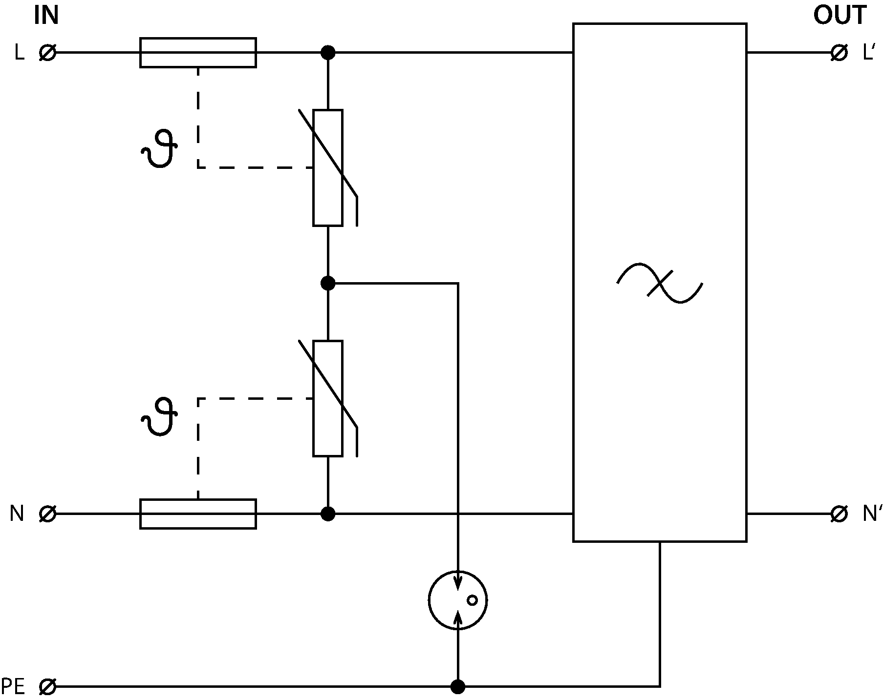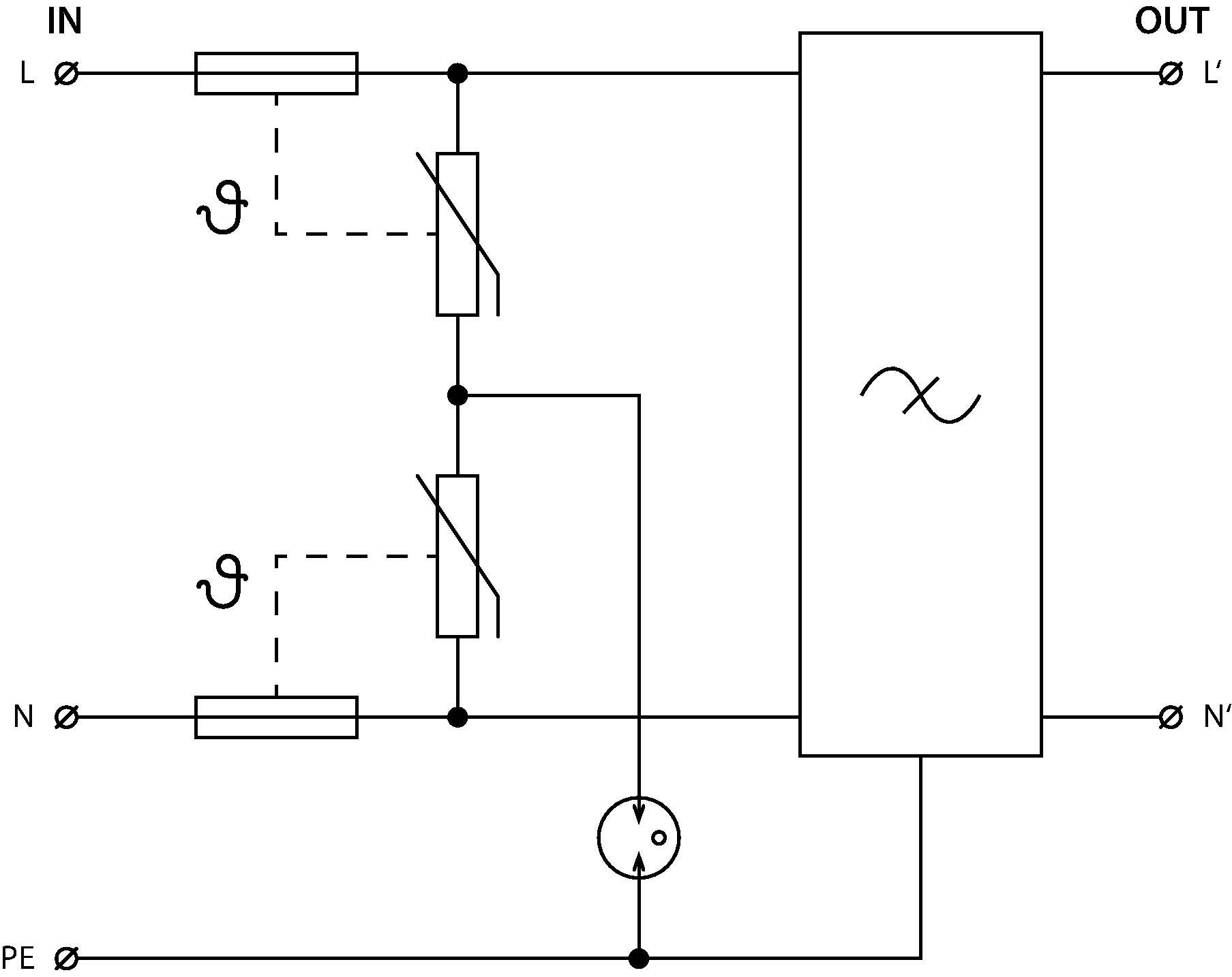 | Jmenovitý výbojový proud (8/20 µs) N-PE | In | 3,00 kA |