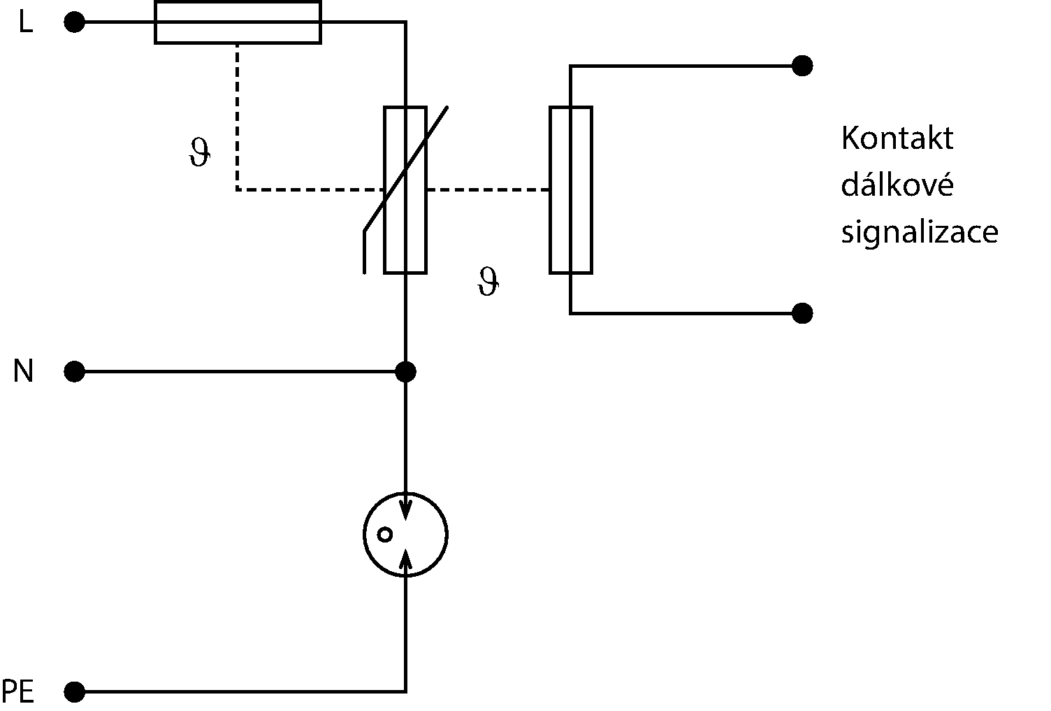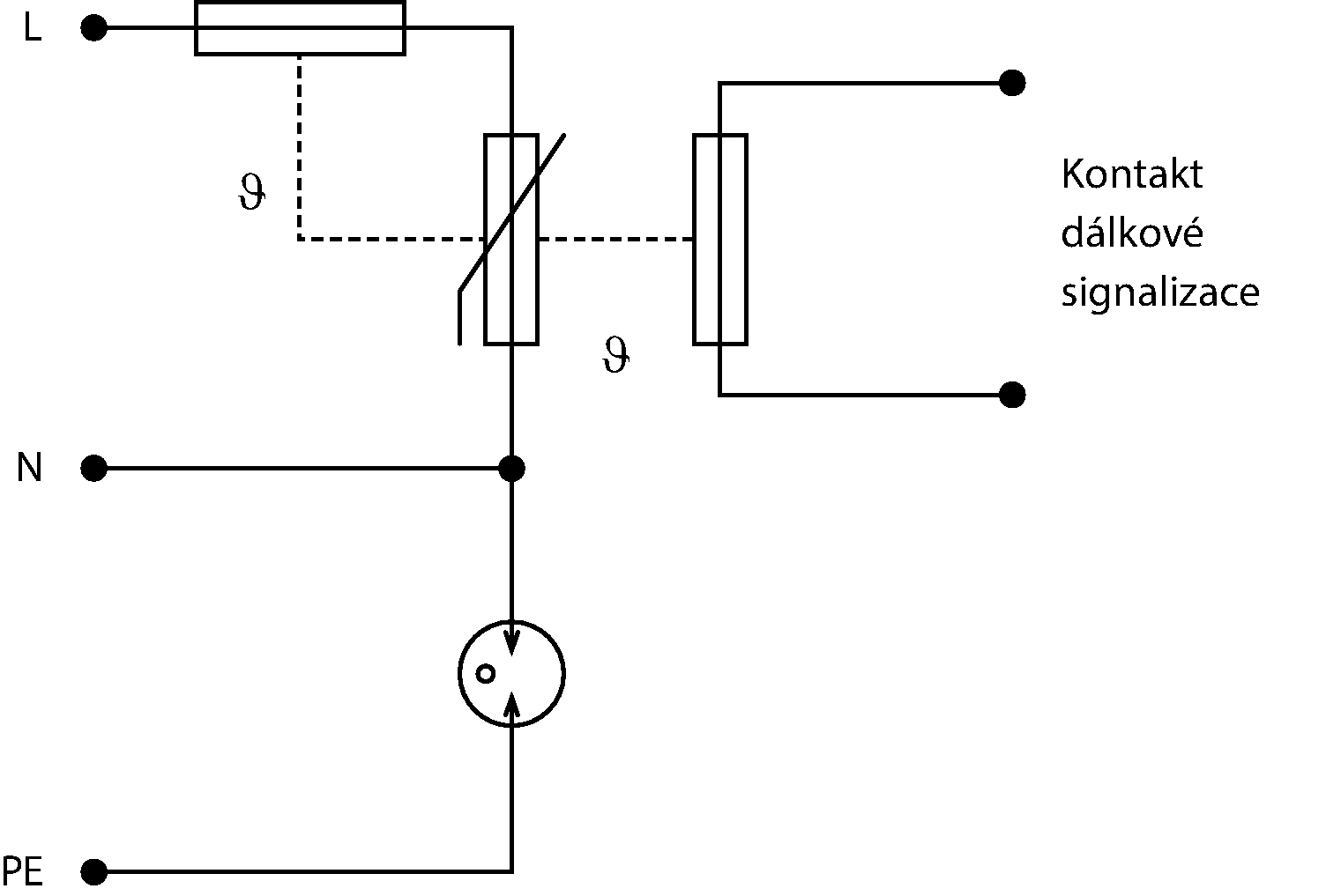 | Dálková signalizace | bezpotenciálový rozpínací kontakt | |