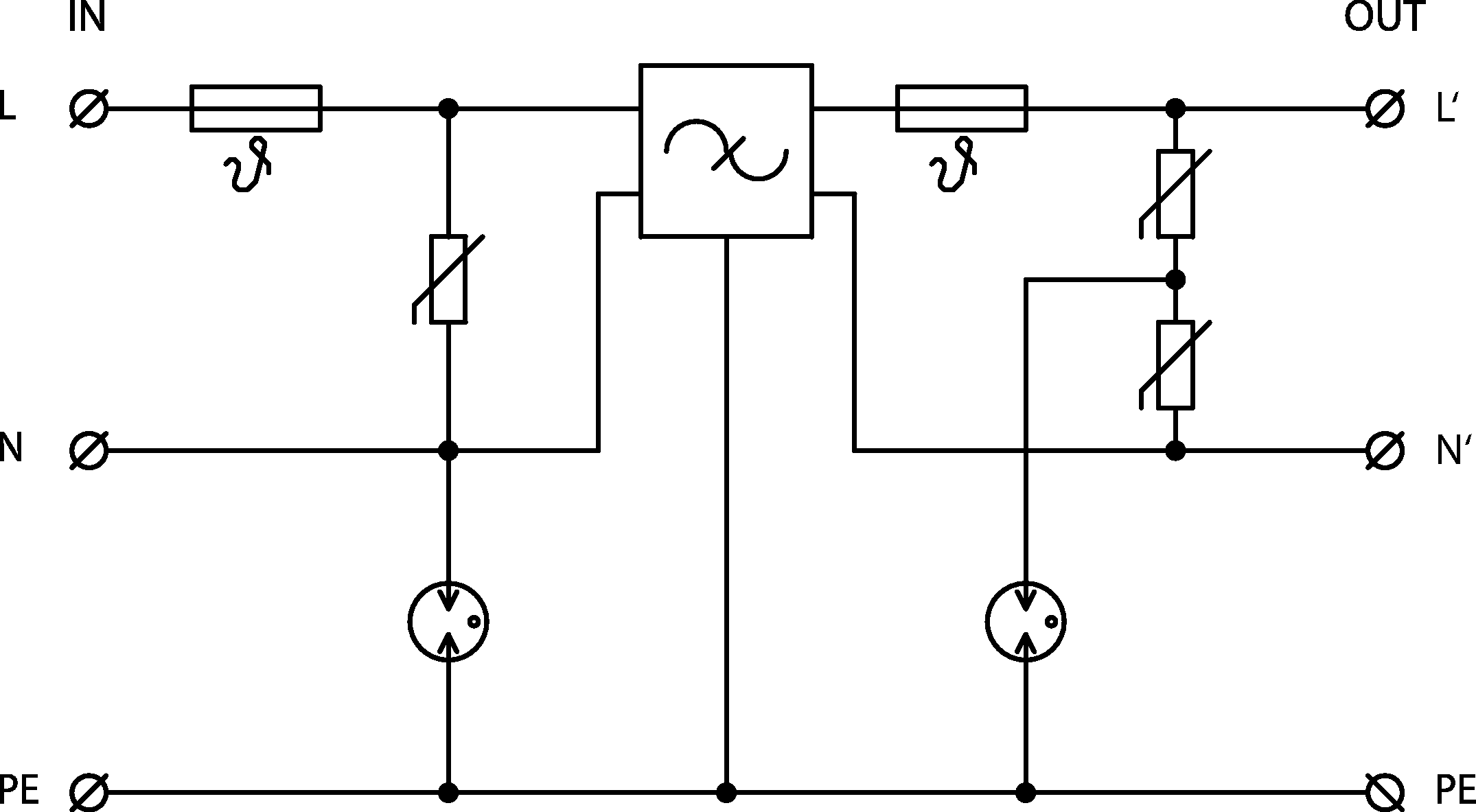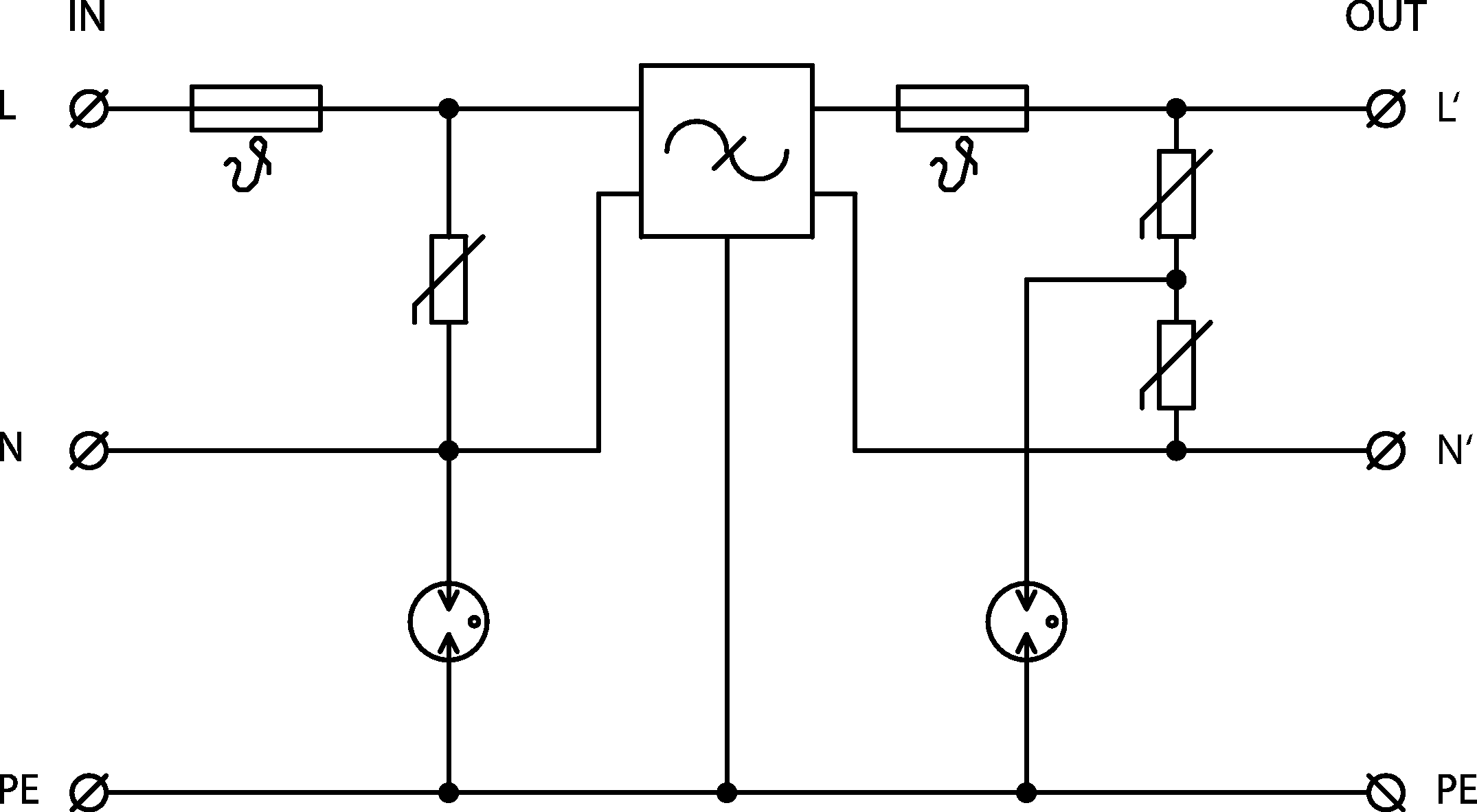 - přepěťová ochrana s integrovaným odrušovacím vf filtrem