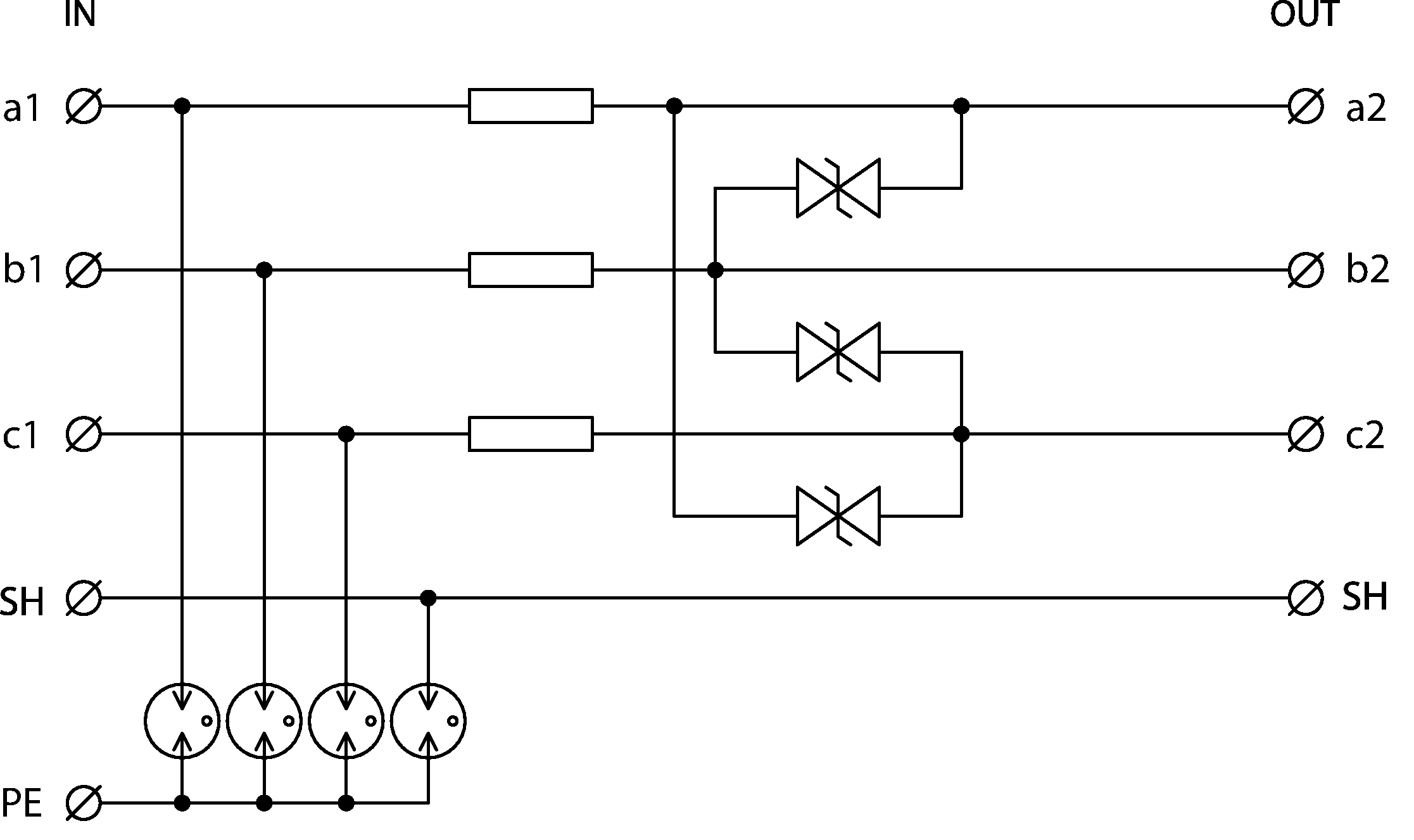 - dvoustupňová přepěťová ochrana třížilových signálových linek
