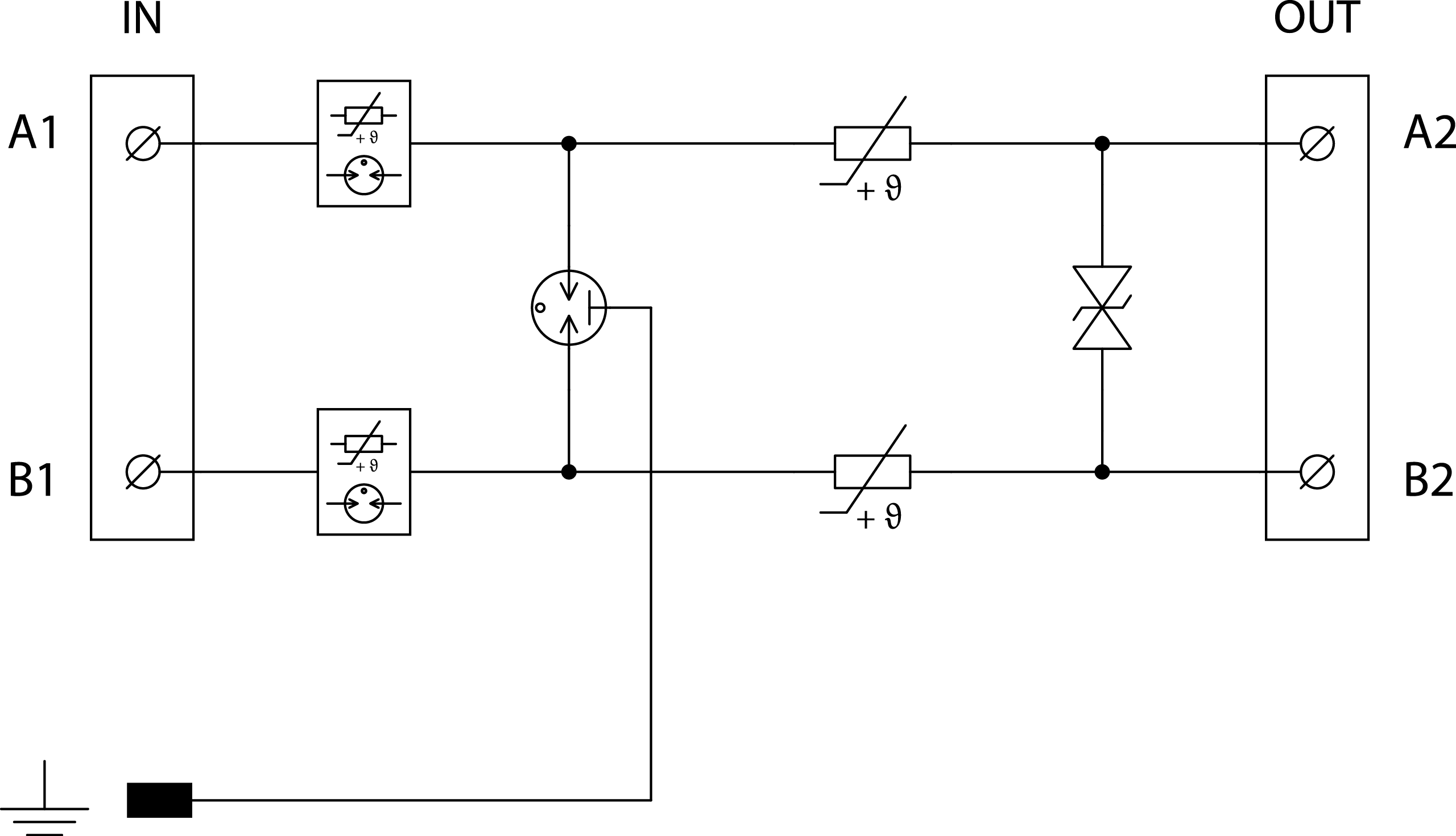 - speciální dvoustupňová přepěťová ochrana dvoužilových signálových linek s omezením zavlečeného proudu