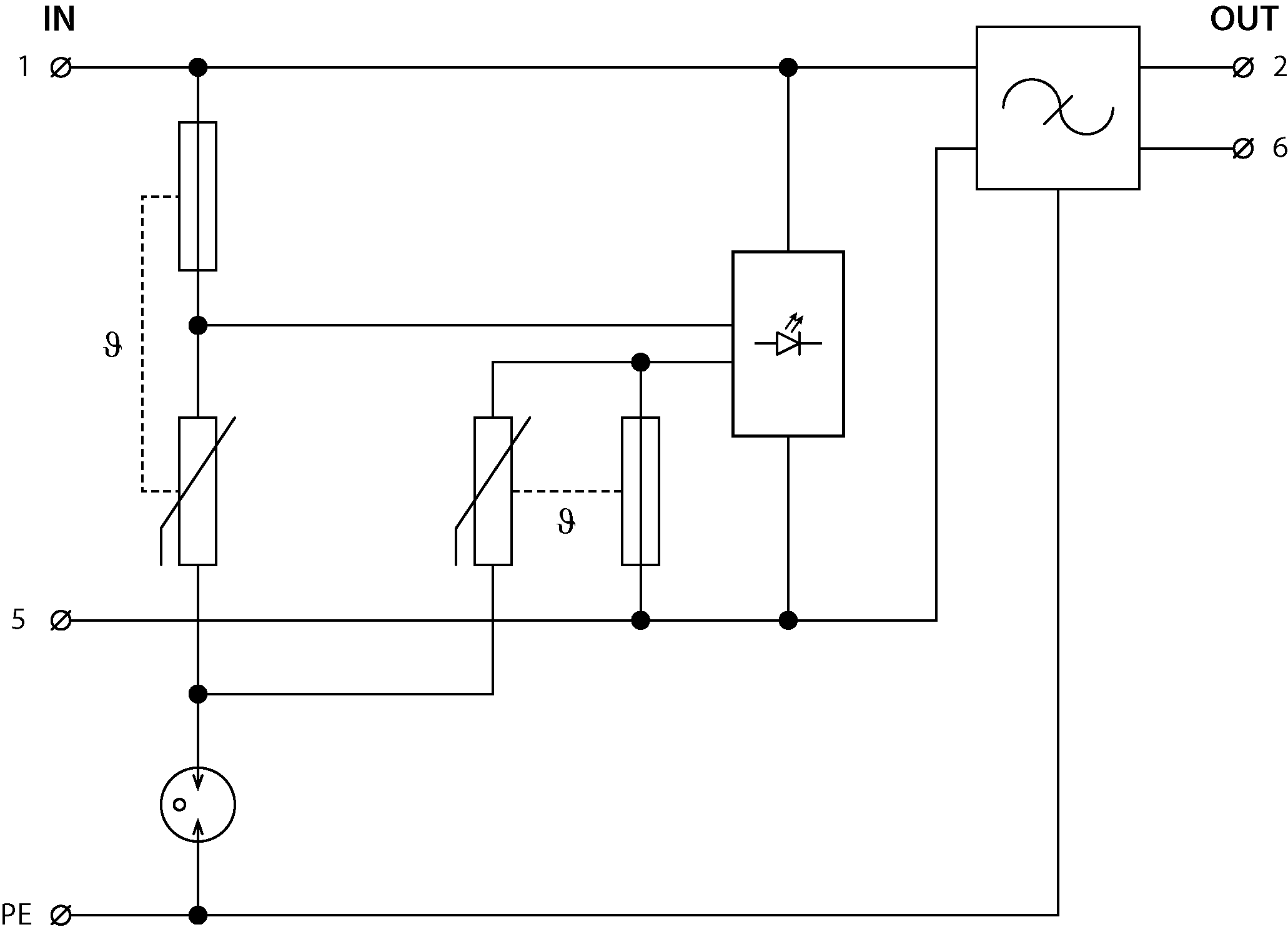 - přepěťová ochrana s integrovaným odrušovacím vf filtrem
