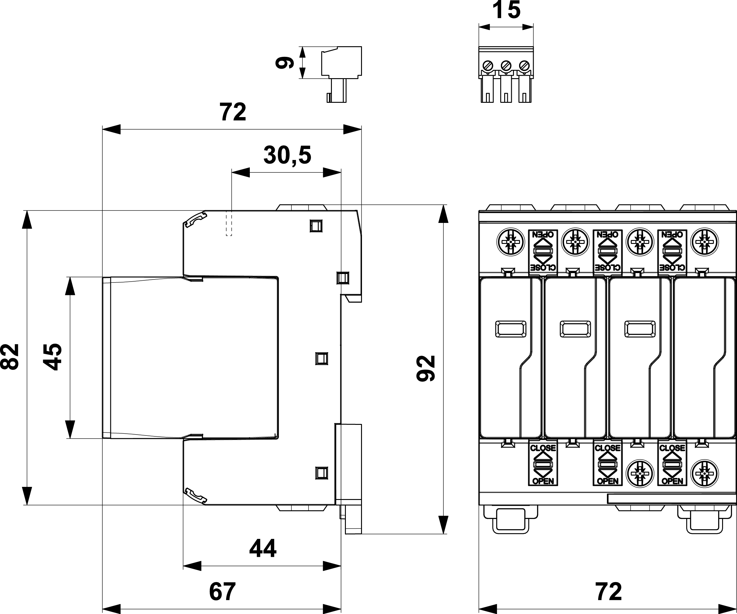 Objednací číslo: A03428vyjímatelný modul, optická signalizace poruchy, možnost blokace modulu, dálková signalizace poruchy
