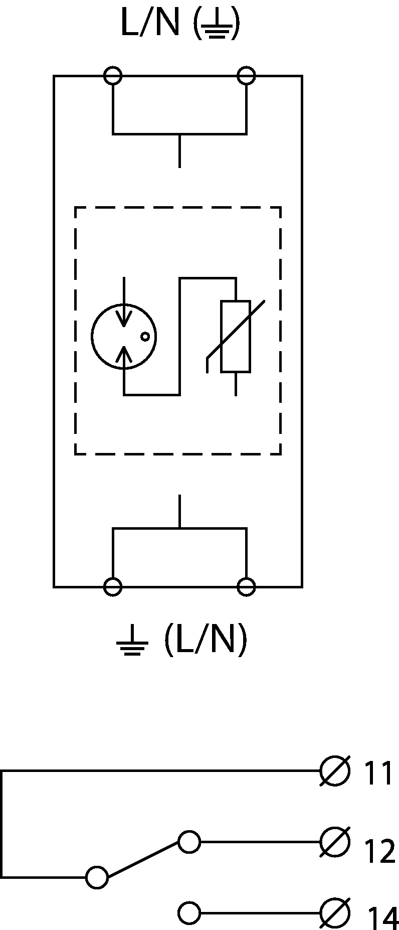 - koordinuje s SPD typu 2 (SLP-275 V) i bez použití oddělovacích tlumivek, nulový unikající proud, volitelně dálková signalizace stavu