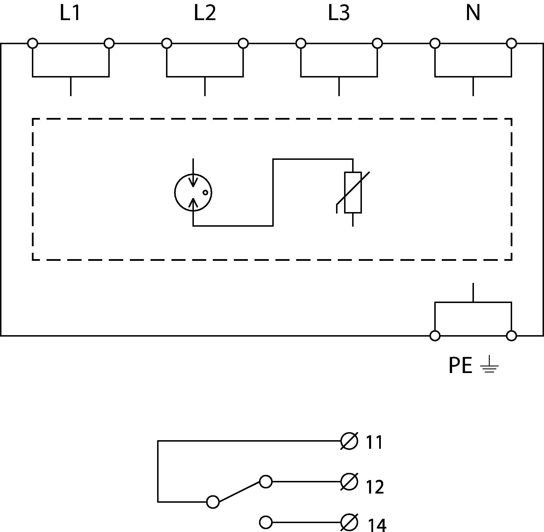 - čtyřpólový velmi výkonný kombinovaný svodič bleskových proudů, bez vzniku následných proudů