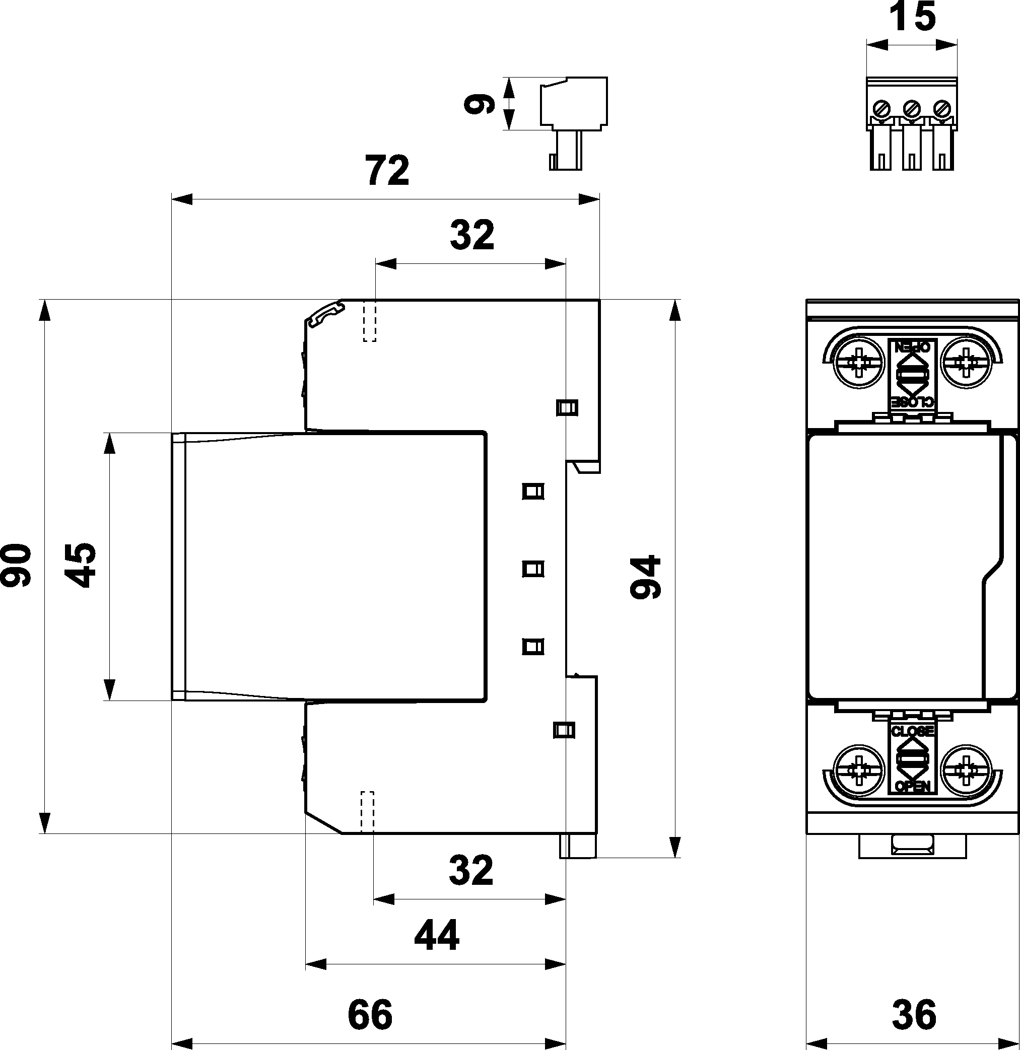 Kontakty dálkové signalizace 250 V / 0,5 A AC, 250 V / 0,1 A DC
