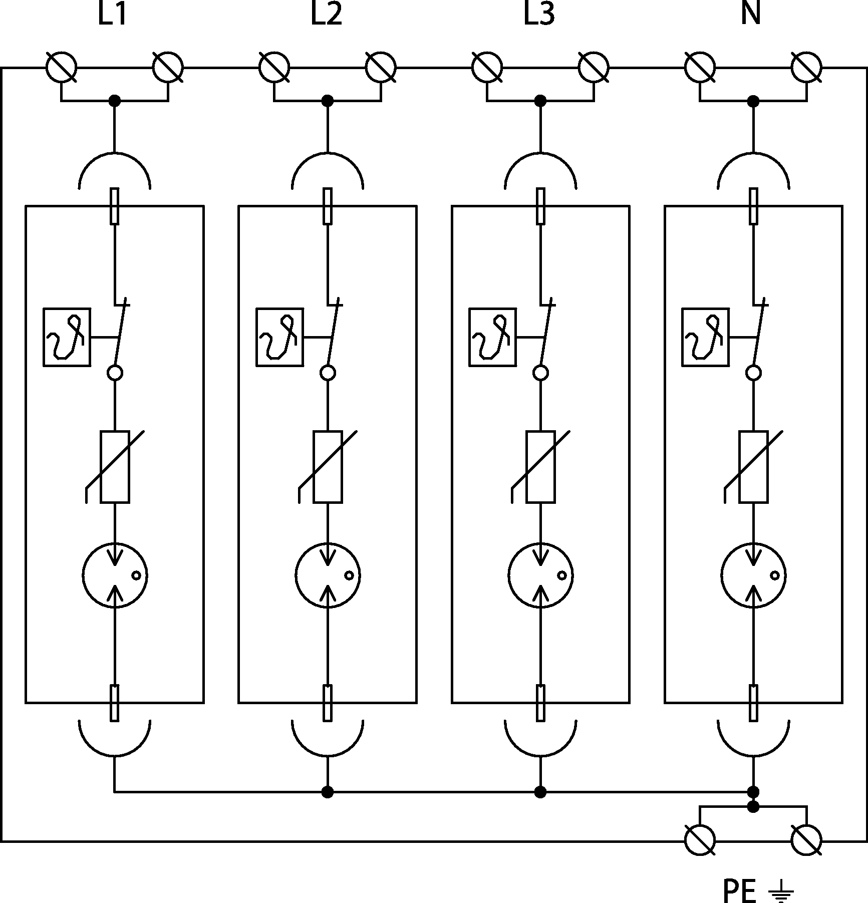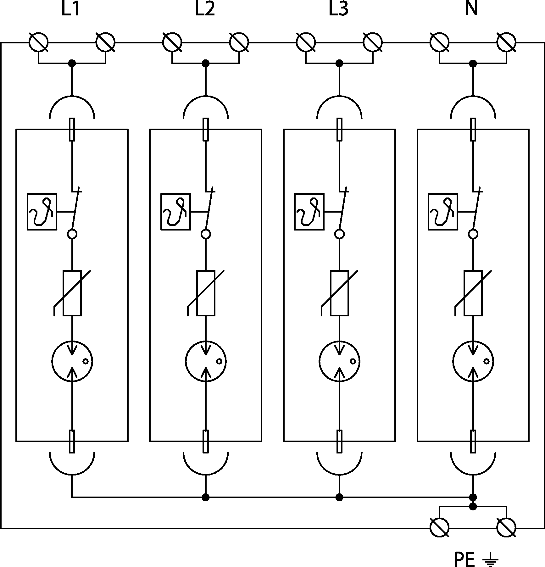 - čtyřpólový výkonný kombinovaný svodič bleskových proudů