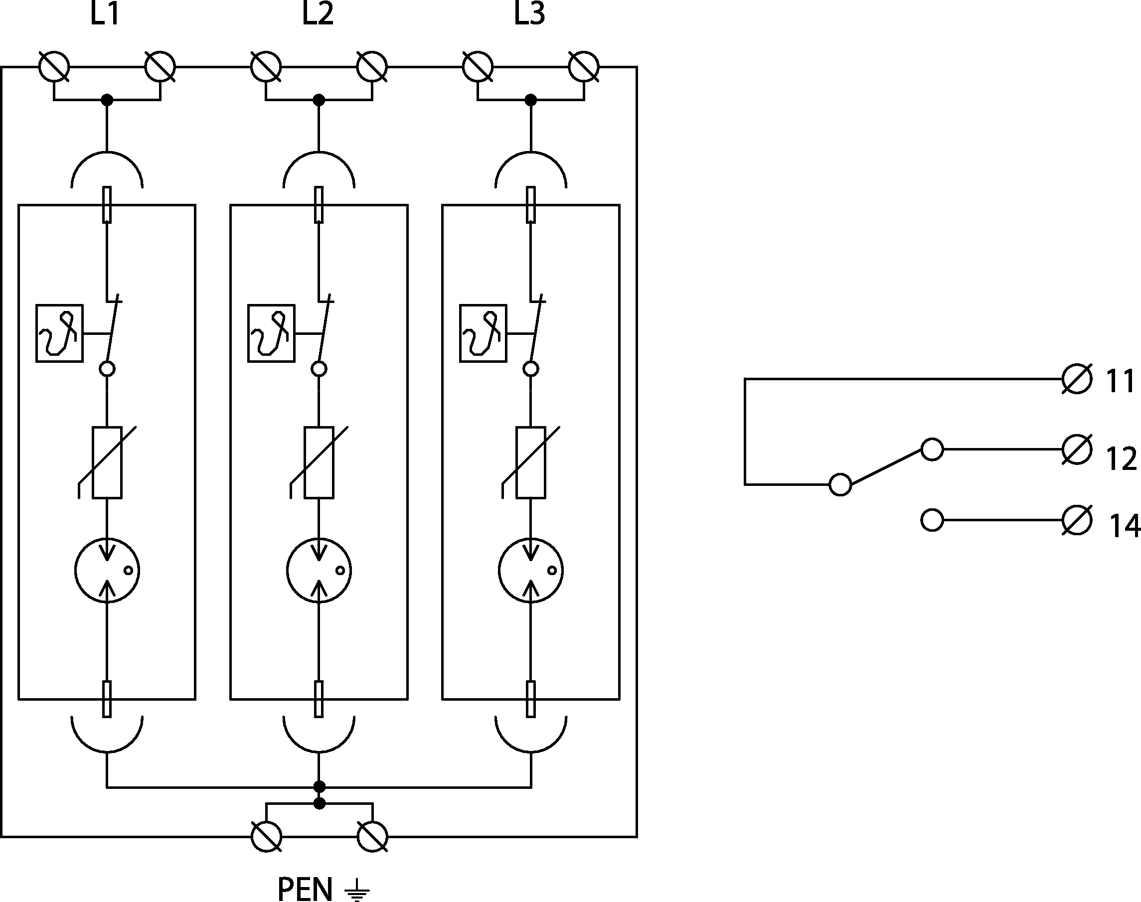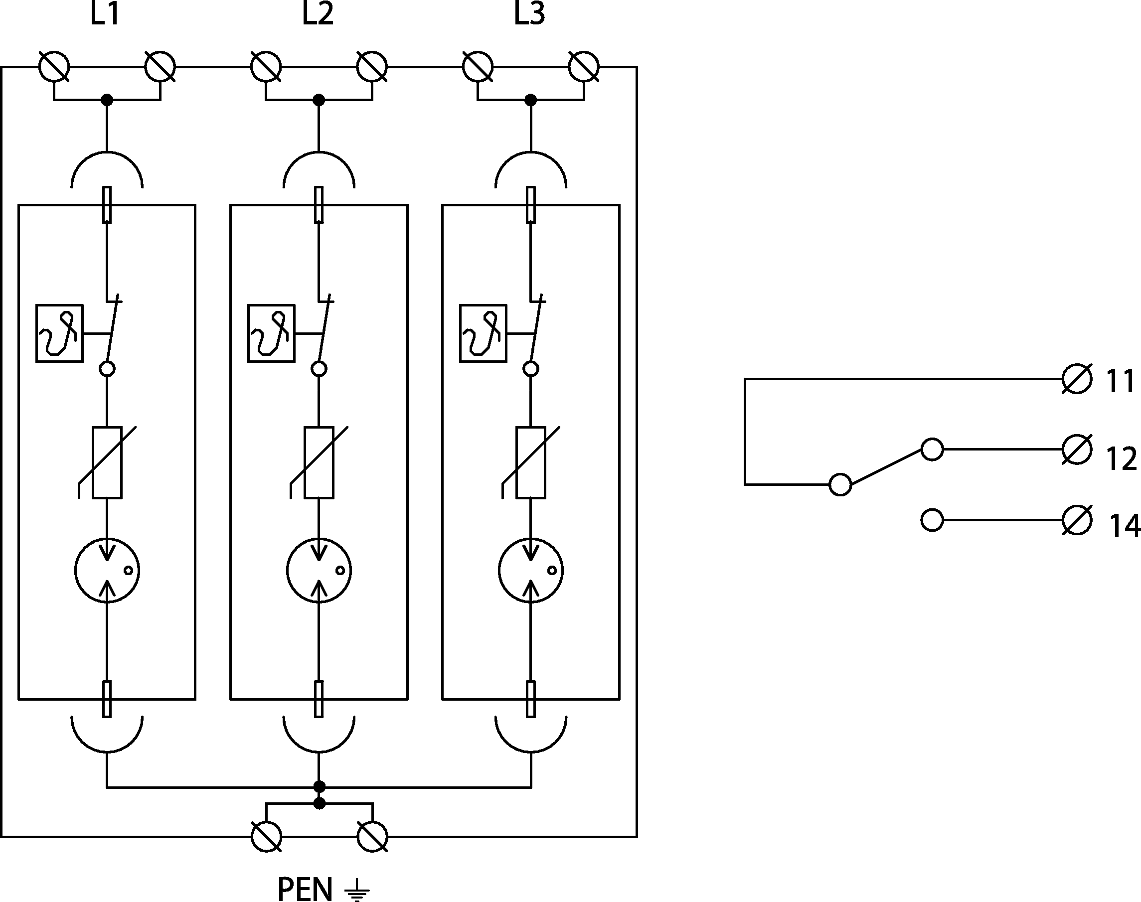 - třípólový výkonný kombinovaný svodič bleskových proudů