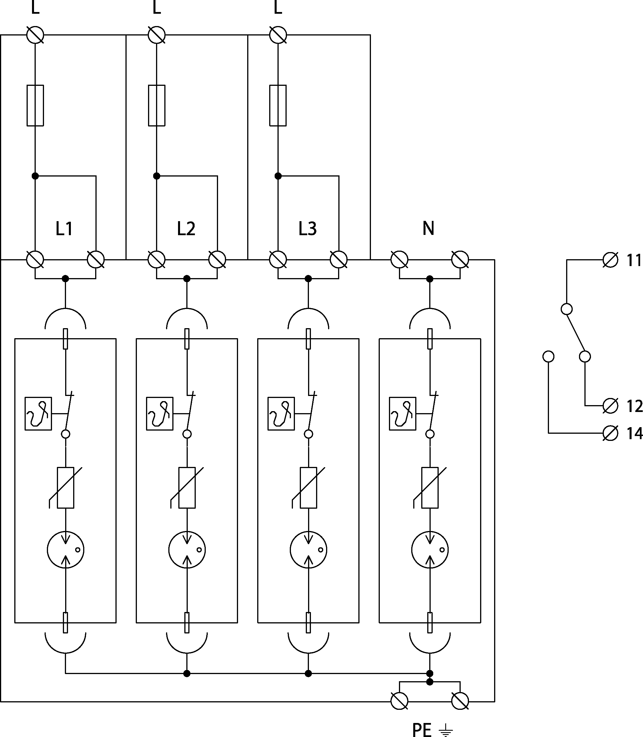• určený k instalaci do rozvodů nn, na rozhraní zón LPZ 0 a LPZ 1, především do hlavních rozvaděčů
