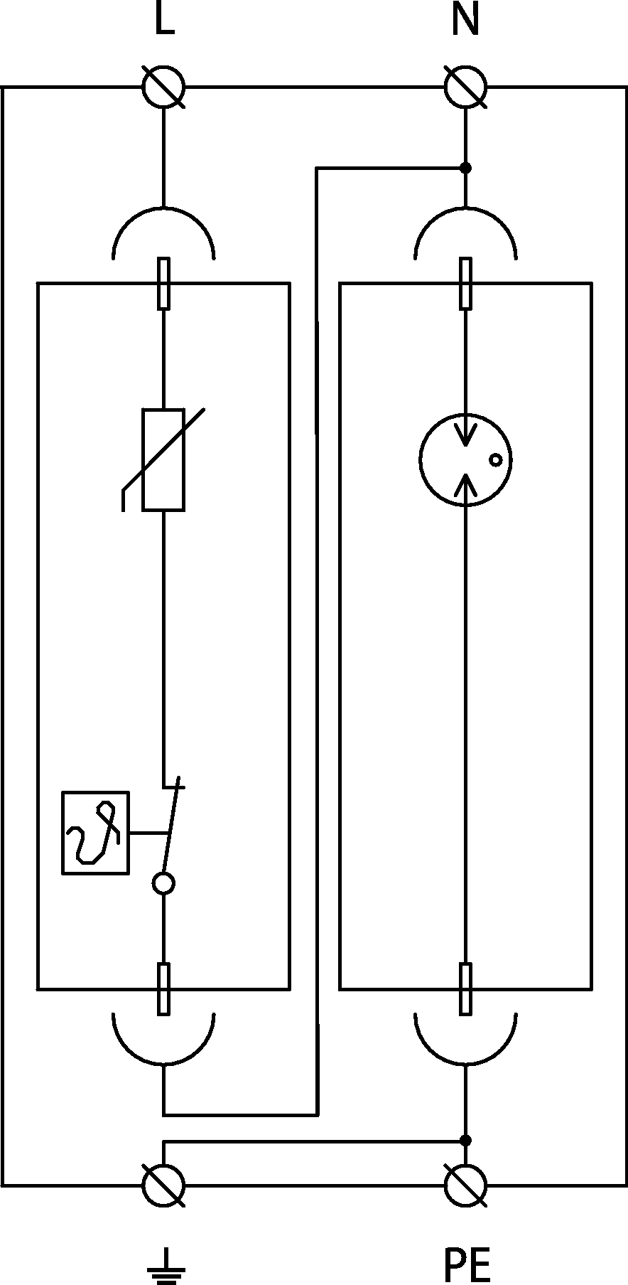 | Jmenovitý výbojový proud (8/20 µs) N-PE | In | 20,00 kA |