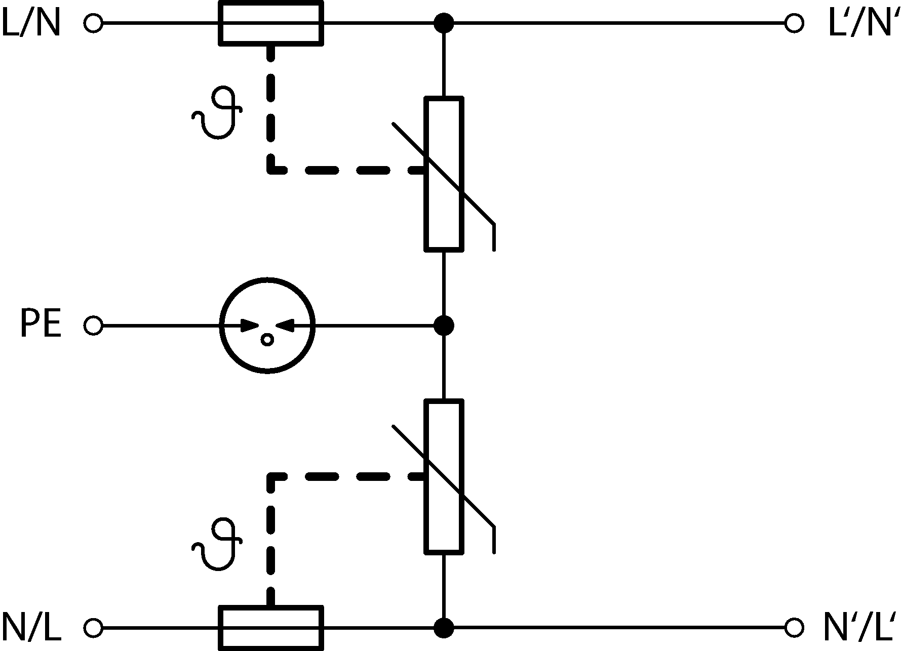 | Jmenovitý výbojový proud (8/20 µs) N-PE | In | 5,00 kA |
