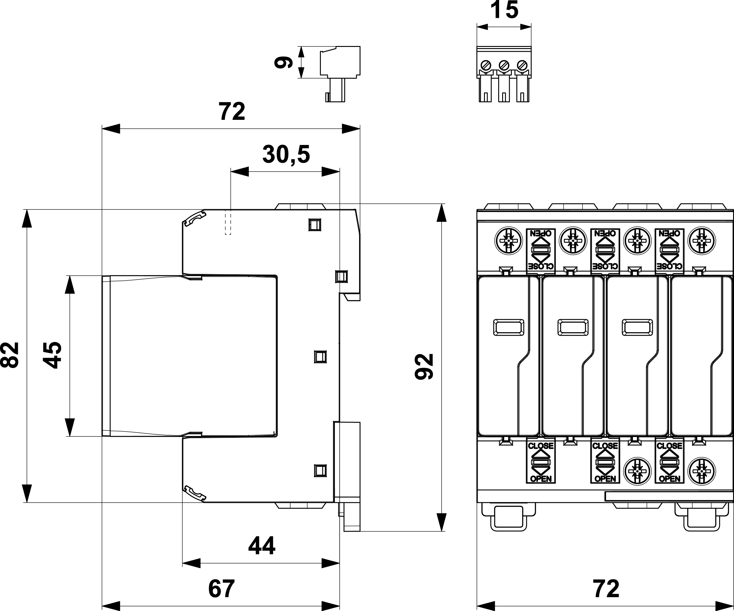 Objednávacie číslo: A07060vyberateľný modul varistoru, optická signalizácia poruchy, diaľková signalizácia poruchy